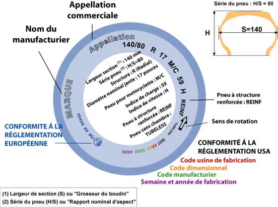 Toutes ses informations sont tirées du site T.N.P.F ( Travaux de Normalisation des Pneumatiques pour la France ) regroupant les marques Bridgestone, Dunlop, Metzeler, Michelin et Pirelli.