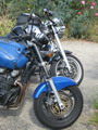 Sur les coups de 13h, et après avoir abandonné l'idée d'aller musarder sur les départementales, nous arrivons enfin à Trévenaste, lieu dit sur la commune de Sarzeau où nous posons les sacs avant de passer à table. Julie, arrivée la veille, nous a préparé un véritable festin de grillades que nous dégustons en compagnie d'un couple d'amis motard ( Alan et Alexandra, venu participer au week end ) ainsi que Eric, le guitariste de Julie, accompagné de sa femme Olga. Une Joyeuse tablée qui lézarde sur la terrasse à l'ombre des store-ban jusqu'à l'arrivée de Solo vers 16h qui marque le début de la promenade autour de la presqu'île de Rhyus.