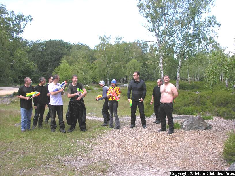 La balade commence tranquillement par l'autoroute pour sortir rapidement de Paris et attaquer les petites routes d'Île de France. Après quelques kilomètres, un arrêt est nécessaire en pleine campagne, dans le seul but de permettre aux fumeurs d'en griller une... (Note du Potesbusters Averell : Coïncidence, Le Taz en profitera pour faire une vidange... Comme quoi, des fois le hasard fait bien les choses)(Note du Potesbusters Taz : Oui et alors...). Cette courte halte sera l'occasion pour certaines personnes... comment dire... de commencer les tractations avec les " Potesbusters " pour éviter d'être copieusement arrosés. Mais les " Potesbusters " sont totalement insensibles aux sirènes de la corruption et resteront intraitables et inflexibles.