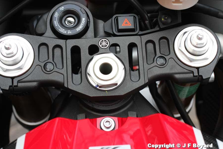 Comme indiquer sur notre saga du R1, il y a un Bug sur ce T de fourche le warning qui situé là il est pratiquement inutilisable.