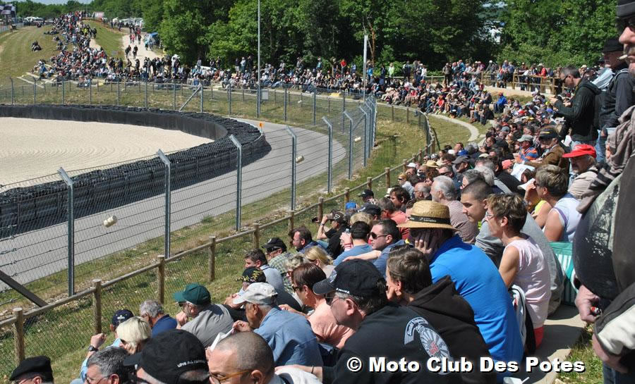 En tout cas, depuis plus de 22 ans et malgré le contexte économique difficile, cet événement a une fois de plus fait le plein, avec pas loin de 35 000 personnes payantes sur le week-end, à rapprocher des 27 000 de l’année dernière. Rapportez ce nombre à celui des spectateurs du dernier Bol d’Or où il n’y a eu que 13 000 spectateurs, et vous comprendrez que c’est franchement pas mal du tout pour cette niche économique qu’est la moto ancienne. Le succès de cette manifestation tient en effet à un savant cocktail de plusieurs ingrédients au sein d’une même recette mijotée depuis les origines, mais subtilement bonifiée au fil des ans. Saupoudrez pour ce millésime d’un temps magnifique et chaud, et il ne serait pas étonnant que les statistiques de fréquentation explosent tous les compteurs cette année.