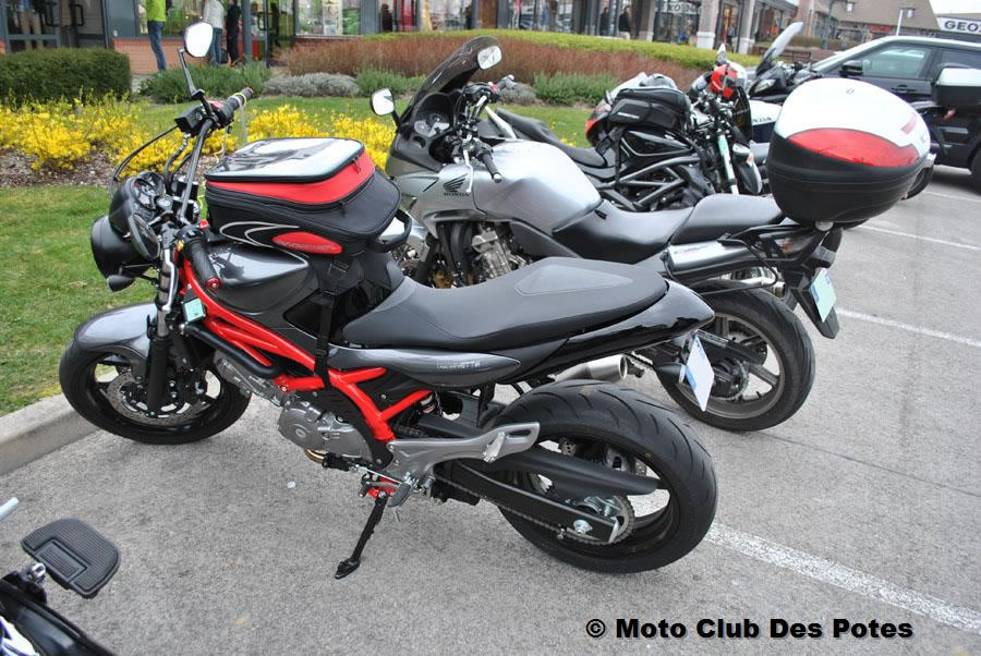 Balade de Troyes Nos balades se vivent comme diraient certains et ne peuvent se raconter, il faut venir pour comprendre. Alors oui on est pas contre et c’est pour cela que petit à petit les comptes rendus de ces dernières années ont été de plus en plus dur à écrire. J’étais devant une page blanche à savoir quoi raconter (je ne suis pas le seul, Cat Woman a eu le même ressenti pour cette balade). Alors quoi vous raconter ? Comment retranscrire sur cette page les moments humains ? Faire une Vidéo et Stop ? NON ! Vous invitez à venir ….. BOF depuis 1982 la porte est ouverte et libre à ceux qui le désirent de venir, rester ou partir. Car au club peu importe la moto c’est le pilote qui compte et son étique et pas question de portefeuille car on fonctionne à l’euro symbolique. Je dis depuis plus de 30 ans : "tu ne trouveras au Club que ce que tu y apporteras" A l’image de cette photo ou se retrouve dans une balade un 125 2T un Scrambler, une routière et un custom. Alors revenons à notre question de départ, quoi raconter sans devenir rébarbatif dans chaque reportage, une idée avait été de faire intervenir les participants au fil de l’eau. Cette pratique S’est perdue, idem faire faire des "Baloo Mag" mais idem au fil des années on s’épuise…. Mais comme souvent quand tu crois que ça va être dur, deux participants te disent on peut raconter notre balade ET LA tu réponds ok génial. Donc Bobo le rookie du club et Cat Woman se colle à cet exercice. Donc me voici face à ma page blanche, comment vous raconter une émotion forte qui lors de cette balade était version 4 XL (comme la taille de mes chemises) car Tazette "Ma Muse" faisait son retour sur la route avec sa Tazminette. Son dernier RUN date de 2008 lors de notre balade à l’ACE CAFE LONDON. Que celui qui a derrière lui son épouse, sa ou son môme pour la première fois ou après une longue absence sur la route, ne me dise pas qu’il n’a pas la boule au ventre sur les premiers kilomètres. On peut avoir confiance en l’autre notre instinct protecteur prend le dessus. Nous voici au RDV 6h30 tout le monde est là et GO sur les petites routes. Nous partîmes à 6 de Paris. Sur la route, passé Provins, la belle italienne Calamity (la 888 de Baloo) jalouse de la belle Tazminette (la 650 Gladius Scrambler de Tazette) qui sous ses origines japonaises a des airs d’italienne avec son cadre treillis exposé à tous et sa préparation faite chez Reuilly Moto. Calamity italienne pur jus avec un tempérament qui va avec et digne de sa réputation, a commencé à refuser de garder son phare allumé, 1er stop. Jeff remonte le groupe et nous avertit que Calamity boude 500M plus haut sur le bord de la route, on la redémarre à la poussette et Baloo et Jeff décide de la conduire au plus vite chez son styliste sur Meaux n’étant pas loin de celui-ci. Le groupe amputé de Baloo et Jeff reprend la route. Appel téléphonique de Baloo : "Calamity m’a fait le coup de la panne, sa colère ne s’est pas arrêtée, trop jalouse de la concurrence, j’appelle l’assistance et la fait rapatrier chez son concessionnaire qui va la cajoler". Jeff ayant fini son assistance de commissaire de piste, nous rejoindra sur Troyes assez rapidement. Arriver à Troyes avec tout juste 220 bornes au compteur, car comme d'habitude nous n’avons pas pris un chemin direct, et avons fait quelques petit détours … nous sommes rejoint par Mario-Bross et m'dam Debeulyou et les deux fistons Franck et Christophe. Comme le but de notre balade était les magasins d’usine, on ne pouvait passer à coter de la boutique d’usine Haribo ou je vous assure nous avons fait le plein de bonbons dans nos besaces. Christophe un fan de 2 temps et surtout d’Aprilia RS prend la pause sur la moto de Bobo. Comme indiqué plus haut cette balade fût marquée par les premiers tours de roues de Bobo et son 2T et étant sous la haut et bienveillant regard de m'dam Cat Woman. Elle a profité de graisser sa moto ainsi que de cette odeur douce et spécifique au 2T à chaque ré-accélération de Bobo. Au retour Tazette posera pour un autre article, l'essai des produits Segura et Bagster avec sa Tazminette. Je vous laisse avec les comptes rendu de Cat Woman et Bobo.