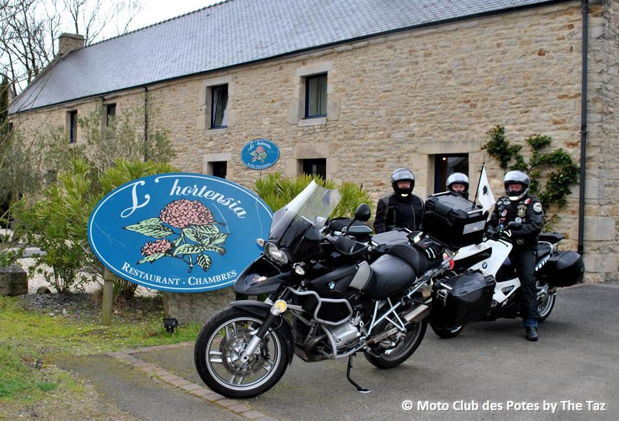 Je ne parlerai pas de l'arrêt d'urgence pour Séverine, les orties et que même certaines parties des orties sont arrivées à Dinan…. SI SI ! MAIS NOUS AVONS PROMIS ON EN PARLERA PAS ! Le repas se passe chez un Toulousain installé à Dinan et j'ai oublié de vous dire qu'Oscar est du Sud aussi comme quoi la Bretagne est une belle région et une région d'accueil où il fait bon vivre. Le retour se fera le soir à l'Hortensia. Lors du repas on profite de faire une surprise à Paulo pour ses 50 Piges, ça se passe aussi comme ça au Moto Club des Potes.