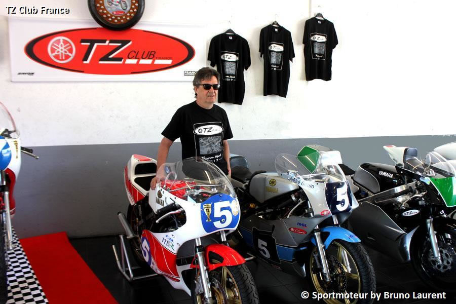 Nous avons décidé de vous parler aujourd'hui d'un club que nous apprécions pour ce qu'il représente. Il s'agit du TZ Club France. D'abord, nous donnons la parole à Monsieur Éric de Seynes Chief Operating Officer of Yamaha Motor Europe, Executive Officer of Yamaha Motor Co., Ltd : Pourquoi le TZ Club, déjà parce que la TZ, ou plutôt les TZ, sont des motos mythiques qui ont permis à tant de champions d'éclore à une époque où un privé avec cette machine pouvait s'imposer, même en championnat du monde, la première vraie compé-client, parce que les buts de ce club« Regrouper les possesseurs des Yam TZ dans l'amitié et la convivialité, et apporter aux membres les moyens de s'épanouir avec leur TZ » sont sympas et aussi parce que l'on aime bien ceux qui animent ce club. Le TZ club a d'abord existé de la fin des années 90 jusqu'en 2013, sous l'égide de Dominique Bréjeat et c'était un club très actif puisqu'il a emmené ses membres en Angleterre et même à Daytona, puis il a été dissous. Fin 2015, c'est André GOUIN, ancien pilote et de vitesse et d'endurance, qui décide, avec la benediction de Dominique Bréjeat, de recréer ce club. Il embarque avec lui Dominique Rossinelli qui lui s'occupe de refaire des statuts et un nouveau logo durant l'hiver 2015-2016. Des contacts sont pris avec les divers possesseurs de TZ au fil des événements 2016 et au mois d'aout lors d'un roulage organisé à Lurcy Levis une série réunit 25 TZ. (Message personnel de D.R. À Marcus : Merci.) Lors du Salon Moto Légende le TZ Club est hébergé sur le stand de la SRC par Jean Pierre Bonato et fête les 40 ans de la TZ 750. Et ses fondateurs obtiennent l'adhésion et le soutien de Eric de Seynes. En 2017, lors de la S.R.C. Au Castellet, ce sont 40 TZ qui sont réunies dans un box pour une expo et des roulages ainsi qu'aux Coupes Moto-Légende à Dijon. Les adhérents se retrouvent dans ces box où régne une ambiance festive et conviviale ainsi que l'entraide en cas de problème technique. Durant l'année les membres ont participé à de nombreux roulages sur des circuits français et même étrangers et aussi à des courses de l'ICGP et de Klass GP. Ce mois d'octobre a vu des pilotes du TZ club rouler à Pau et à Aragon. Le club aura son stand au Salon Moto Légende à Vincennes où vous pourrez rencontrer ses animateurs et adhérer au club si ce n'est déjà fait. L'assemblée générale du club aura lieu durant ce week end et compte bien réunir bon nombre de la centaine de membres recensée. Cette centaine de membres représente environ 150 motos, de la 125 à la 750. Si vous étes possesseur de TZ, n'hésitez pas, vous trouverez au sein du club des passionnés qui ne sont pas avares de conseils et de bons plans. Pour 2018, le club participera à la S.R.C. au Castellet et aux Coupes Moto-Légende à Dijon, comme cette année avec, en principe, un box pour ses membres. L'organisation d'un week end Classic est aussi dans les projets du club. Le TZ Club France profite de cet article pour remercier ses partenaires : Yamaha Motor France, Avon, France Equipement, Secdem et Joinville Motos. Vous pouvez retrouver le club sur sa page Facebook