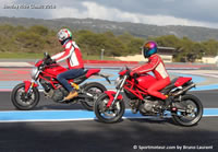 Cet anniversaire a tenu toutes ses promesses et accueilli encore une fois un très grand nombre de visiteurs. Jean-Pierre Bonato, l’inventeur des SRC "Sunday Ride Classic" et son équipe ont dignement fêté l’arrivée du printemps avec le samedi, en marge des courses et démonstrations, en réussissant à rassembler plus de 500 Ducati pour la parade "We love Monster" du 25e anniversaire de la belle italienne. On y retrouvait notre amie Aurelie Hoffmann de Lil'Viber.