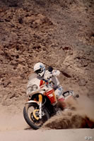 J’ai enchaîné avec pas mal de KTM 125 RV et 250 RV (ex-Boniface achetée à Yannig Kervella), une grosse Yamaha 490 YZ (ex-Cadoret de la Baja 1000) avec laquelle j’ai fait des courses d’endurance tout terrain, la première Baja Espagnole… et, jeune journaliste à Paris, j’ai acheté, en plus d’une lignée de scooters utilitaires, des motos de route, avec un intérêt pour les anciennes : Benelli 900 Sei, Triumph T 120 Bonneville, Kawasaki 750 Turbo, Honda 500 CX Turbo, Suzuki XN 85 Turbo, Honda 125 CB, 250 CB, 750 CB…