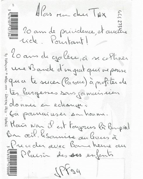 dire. Il cherche un support et un crayon pour livrer en vrac ce qui lui reste.