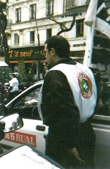 Devenu association officielle, le Moto Club peut à présent s'impliquer en toute légalité dans l'organisation de la manif du 10 Novembre 1994. Encore une manifestation historique de par le nombre de participants qu'elle a rassemblé, une fois encore, le Moto Club des Potes est en première ligne grâce à l'engagement de son président, dont on se demande comment il fait pour être ainsi présent sur tous les fronts malgré des soucis dans sa vie privée. Il convient de remarquer qu'à cette époque, Taz est également engagé dans l'organisation de cette manifestation au titre de " Responsable de l'antenne Île de France pour la FFMC " ! Et oui, le Taz est l'un des membres fondateurs de cette association de défense des droits des motards qu'il requittera par la suite en raison d'une divergence d'opinion, comme il avais déjà fait une premiére fois en 1987. Mais à cette époque, le MCP et la FFMC étaient de nouveau en très bon termes comme le témoigne la double casquette du Taz lors de cette manifestation.