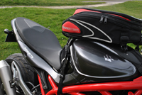 J'ai été le premier et le seul à ce jour à avoir fait 4 pages en 2010 dans Moto Journal sur BAGSTER, avec le concours de son rédacteur en Chef David Dumain, ainsi que le premier à en avoir parlé au Québec et ....... : 30 ans d’expérience issue d’un savoir-faire artisanal, la marque française BAGSTER est devenue leader de l’équipement des deux roues. Créée et animée par des passionnés de la moto, la marque Bagster conçoit des produits de bagagerie, de sellerie et de protection adaptés à tous les types de deux roues avec pour objectif de garantir les plus hauts niveaux de performance, de design et de confort. Bagster est le rare à offrir la plus large gamme de produits sur mesure de haute qualité ainsi qu’un service après-vente unique en France comme dans plus de trente pays. L’esprit qui anime l’équipe du bureau d’études de Bagster est de toujours repousser les limites techniques et d’innover dans le choix des matières et du design pour que chacun puisse pleinement bénéficier de la liberté de rouler à deux roues sans contrainte pour le plaisir d’aller plus loin. J'ai installé sur la Scrambler de Tazette une sacoche EVOSIGN. Cette sacoche mise sur une sobriété optimale, un confort renforcé grâce aux 2 bretelles de sac à dos et la sécurité avec des inserts rétro réfléchissants, un compartiment sous le lecteur de carte de folie idéal pour la route, un volume modulable et pour finir un avant biseauté particulièrement adapté aux motos sportives mais pas que car sur les images vous pouvez constater que le produit s'adapte bien à la scrambler.